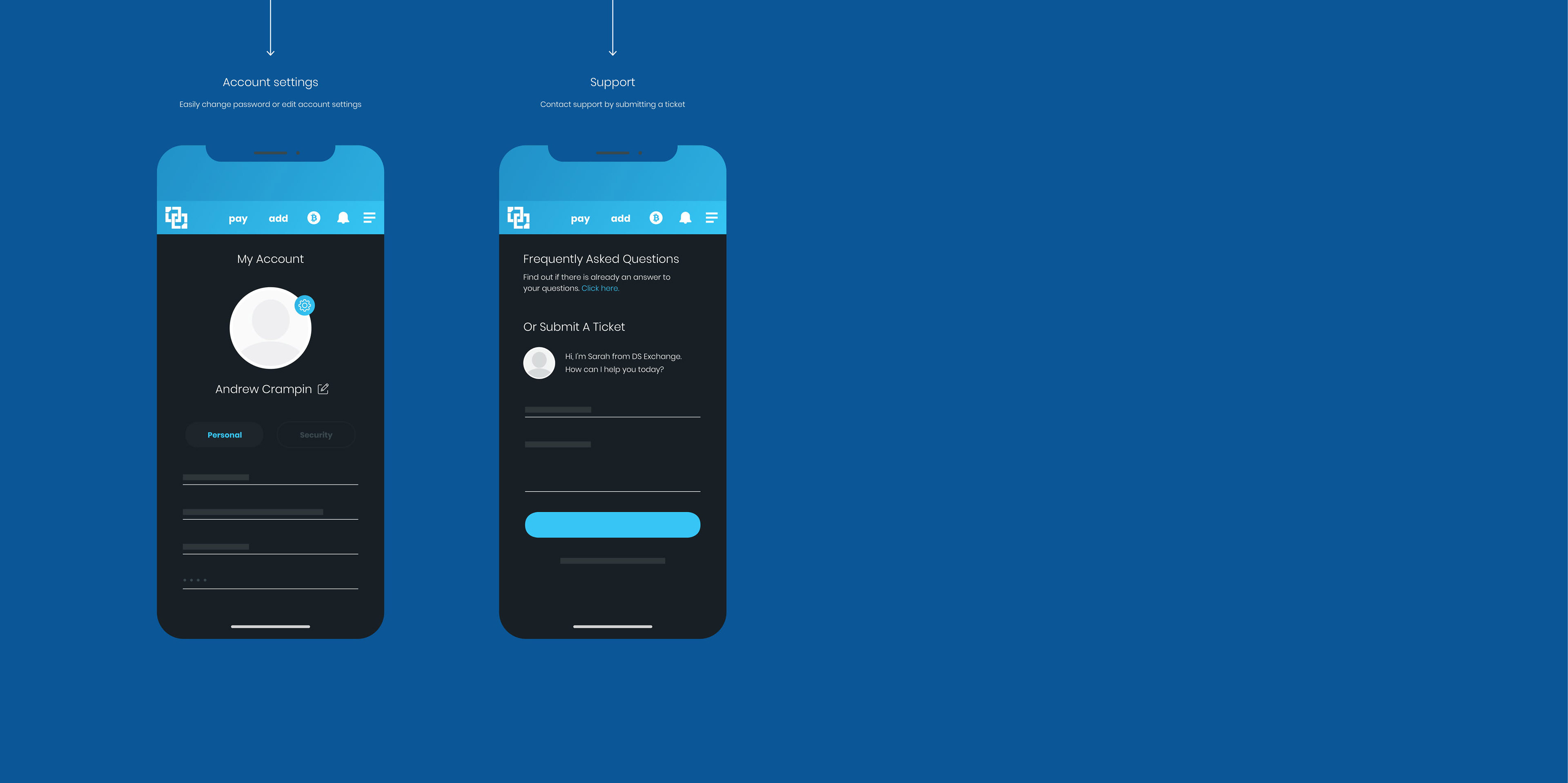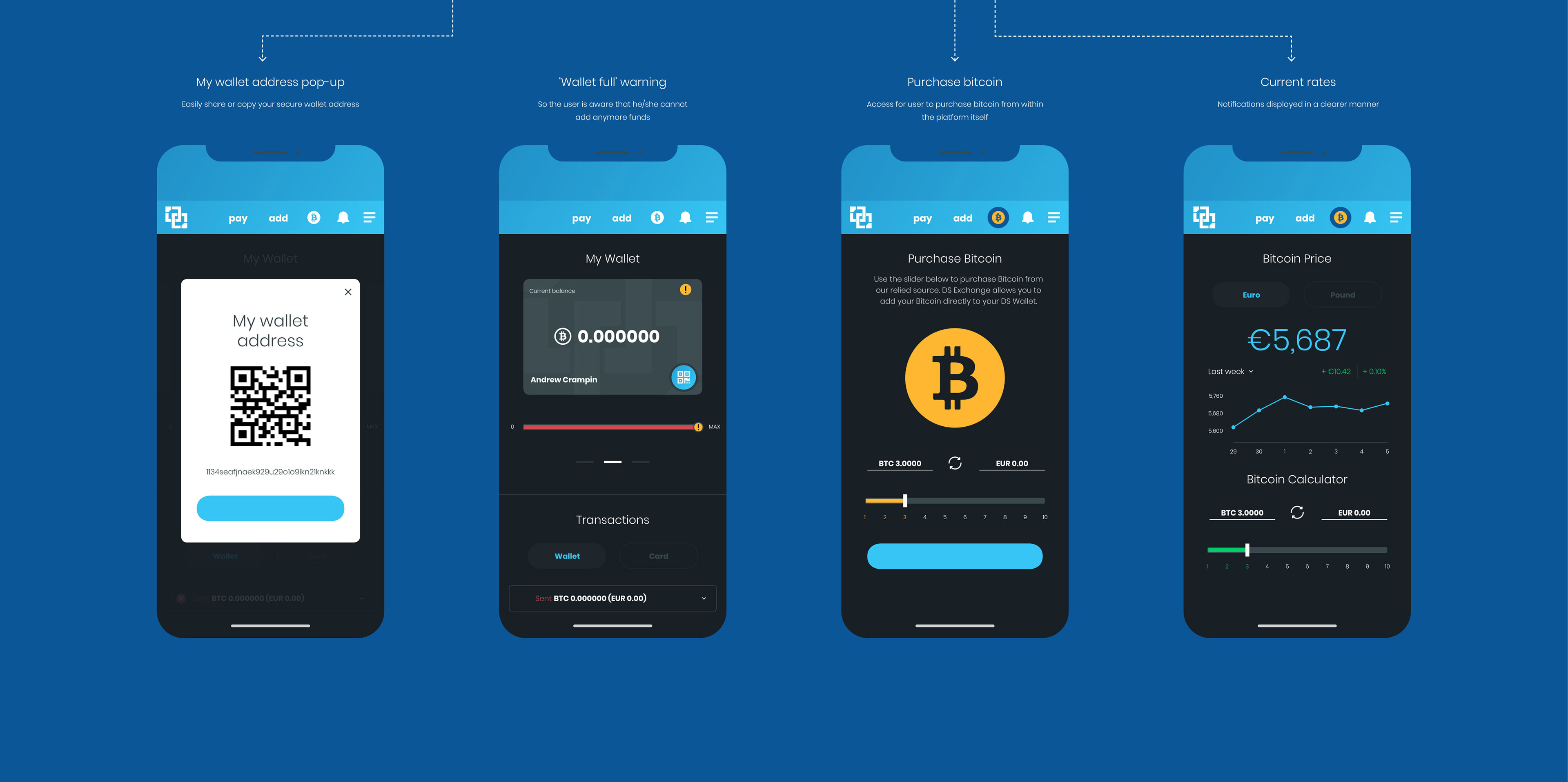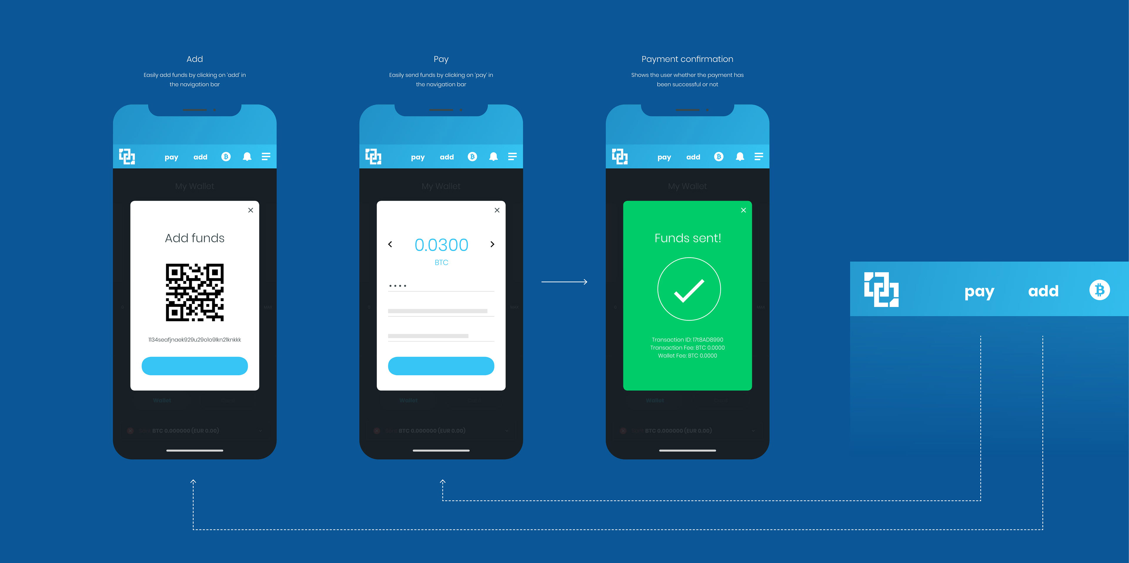 UX/UI, wireframe and design of a concurrency wallet which allows users to spend or withdraw their crypto anywhere, any time.