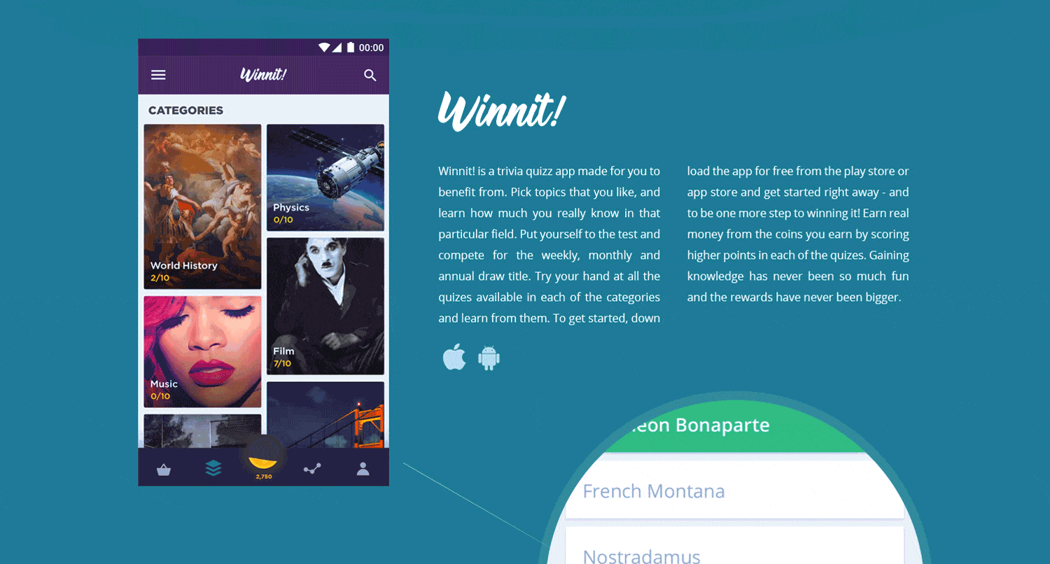 Winnit! Trivia/Quiz App UX/UI Design